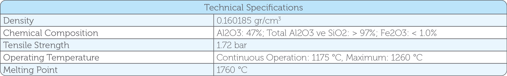 Usage range up to 1260 °C, fire-resistant; good dielectric strength