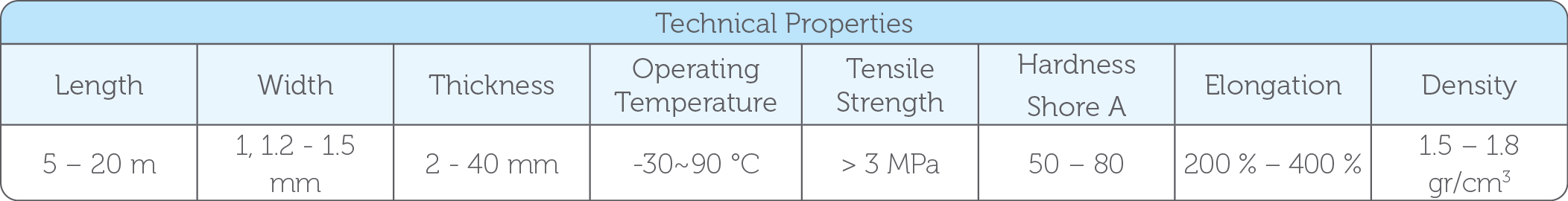 Materials such as cotton, nylon, and Terylene are used as reinforcement materials. Depending on the purpose and material thickness, multiple layers can be used. Generally, single layers are used at thicknesses of 0.50, 1, and 1.5 mm, while double layers are used at thicknesses of 2, 2.5, and 3 mm. The surfaces can be very smooth or have a fabric appearance. They are durable, easy to use and clean. They possess good tear and oil resistance. In diaphragm rubber, while maintaining the rubber properties, resistance to punctures and tears is enhanced with reinforcement material. Optionally, one layer of reinforcement fabric material can be added for every 1.6 mm thickness of rubber.