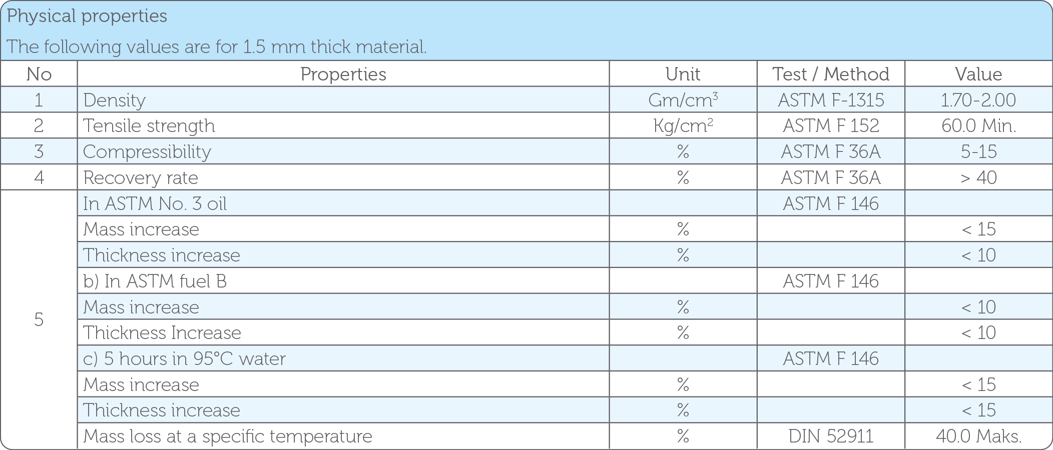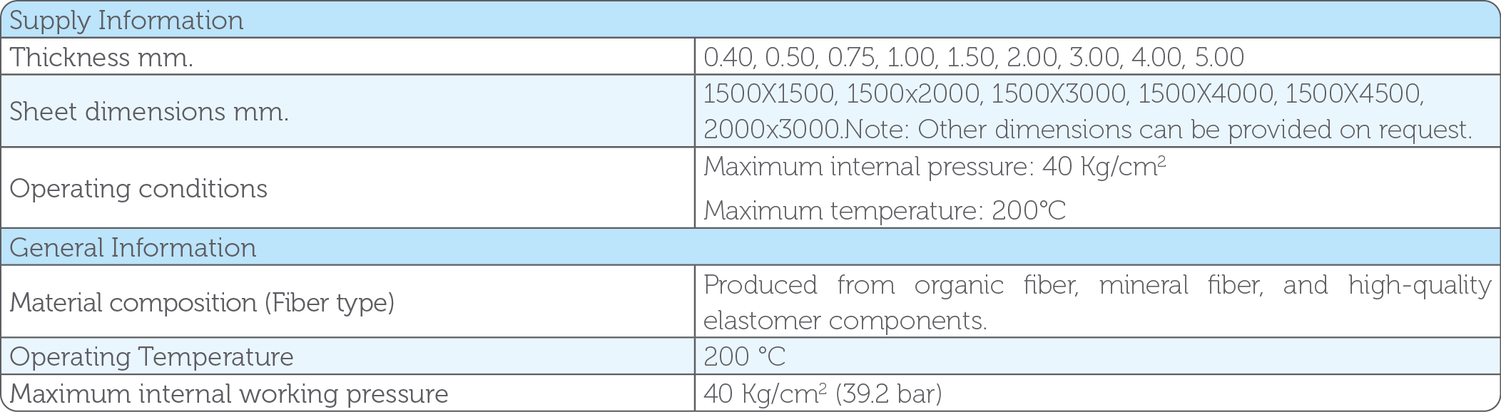 NOTE: The information provided above has been prepared with many years of experience in the production and operation of gasket materials. Considering countless assembly and operational conditions, it is not accurate or technically sound to expect the same results from gasket materials in all applications. Therefore, the information provided does not warrant any right to complaint by the user. It is strongly recommended that you test the gasket material under your own operating conditions to reach a definitive conclusion before proceeding to continuous application. Our expert personnel will be pleased to assist you in the selection of gasket materials.
