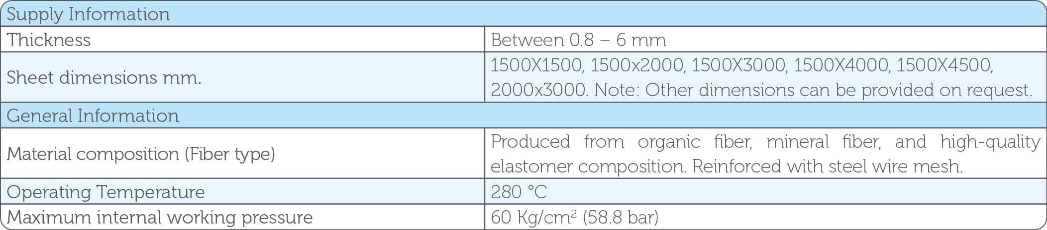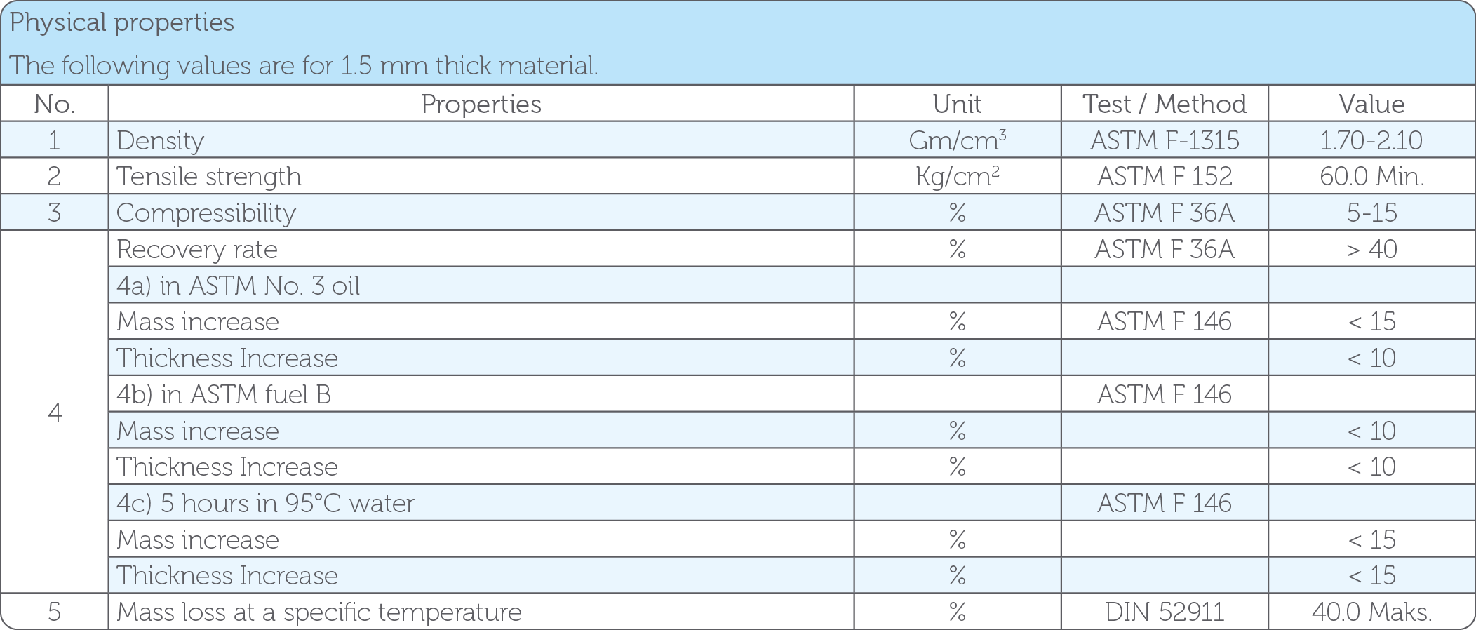 NOTE: The information provided above has been prepared with many years of experience in the production and operation of gasket materials. Considering countless assembly and operational conditions, it is not accurate or technically sound to expect the same results from gasket materials in all applications. Therefore, the information provided does not warrant any right to complaint by the user. It is strongly recommended that you test the gasket material under your own operating conditions to reach a definitive conclusion before proceeding to continuous application. Our expert personnel will be pleased to assist you in the selection of gasket materials.