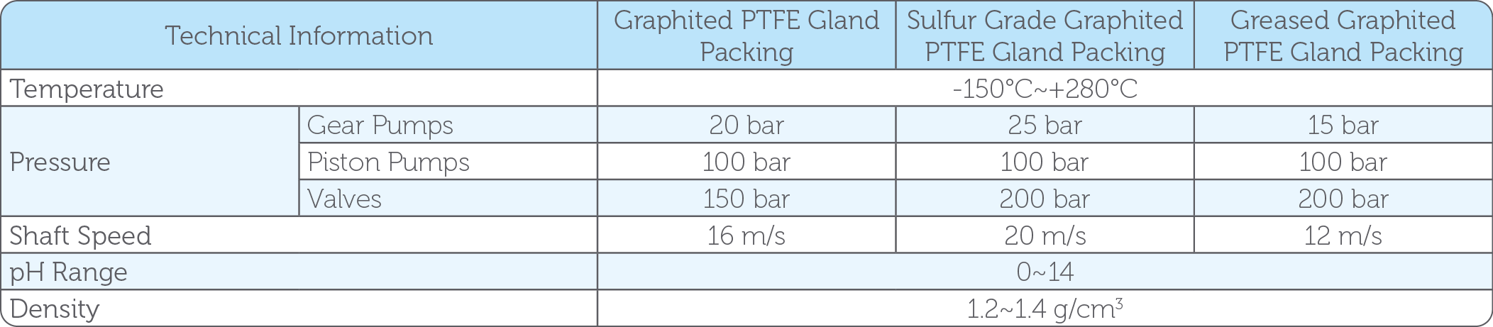 Delivers better results than pure PTFE packings, especially in high-speed and hot environments.