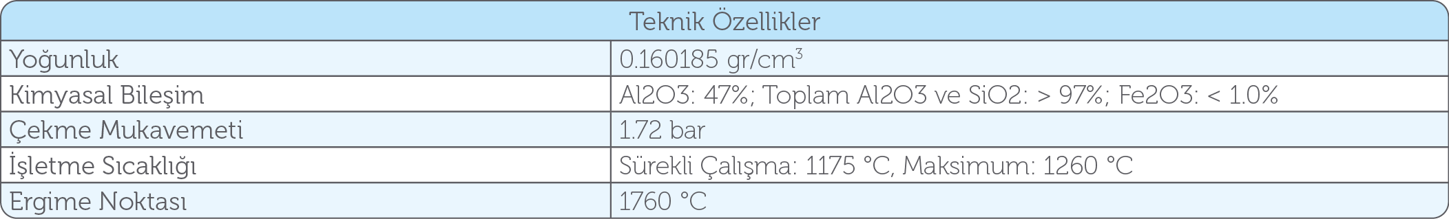 1260 °C sıcaklığa kadar kullanılabilmektedir.