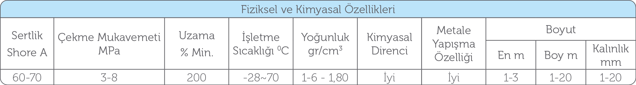 Bez takviyeli NBR (Buna –N) levha, yağ, kostik ve alifatik hidrokarbonlar gibi dirençli malzeme istenen yerlerde kullanılır.