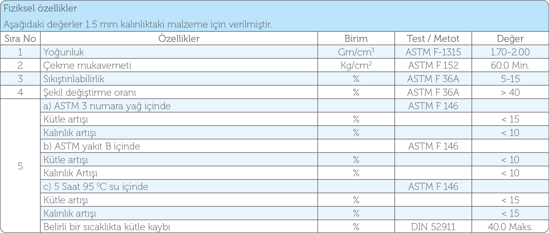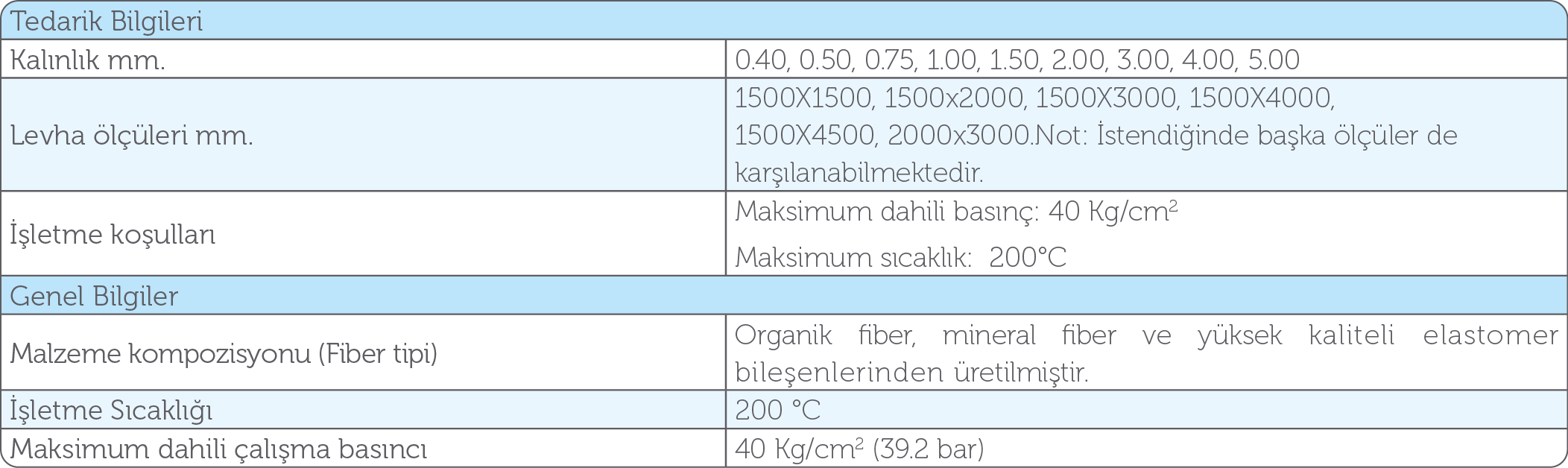 NOT: Yukarıda verilen bilgiler conta malzemesi üretim ve operasyonunda kazanılan uzun yılların tecrübesi ile hazırlanmıştır. Sayısız montaj ve işletme şartları göz önüne alındığında, bütün uygulamalarda conta malzemesinden aynı sonuçları beklemek doğru ve teknik bir yaklaşım değildir. Bu yüzden verilen bilgiler kullanıcıya herhangi bir şikâyet hakkı vermez. Sürekli uygulamaya geçmeden önce, kendi işletme şartlarınızda conta malzemesini deneyerek kesin bir sonuca ulaşmanız önemle tavsiye olunur. Bu konuda uzman personelimiz conta malzemesi seçimi konusunda sizlere memnuniyetle yardımcı olacaktır.