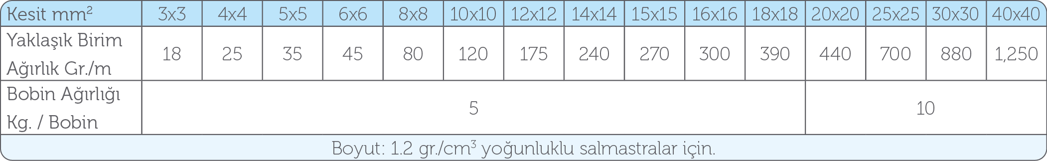 Pamuk ipi veya cam elyafı ile takviye edilmiş düşük sülfürlü genişletilmiş grafit ipten örülmüştür. Bu salmastra iyi bir termal geçirgenlik, kimyasal dayanım ve yüksek esneklik sağlar. Ayrıca, düşük sürtünme katsayısı ile şaft ve millere zarar vermez.