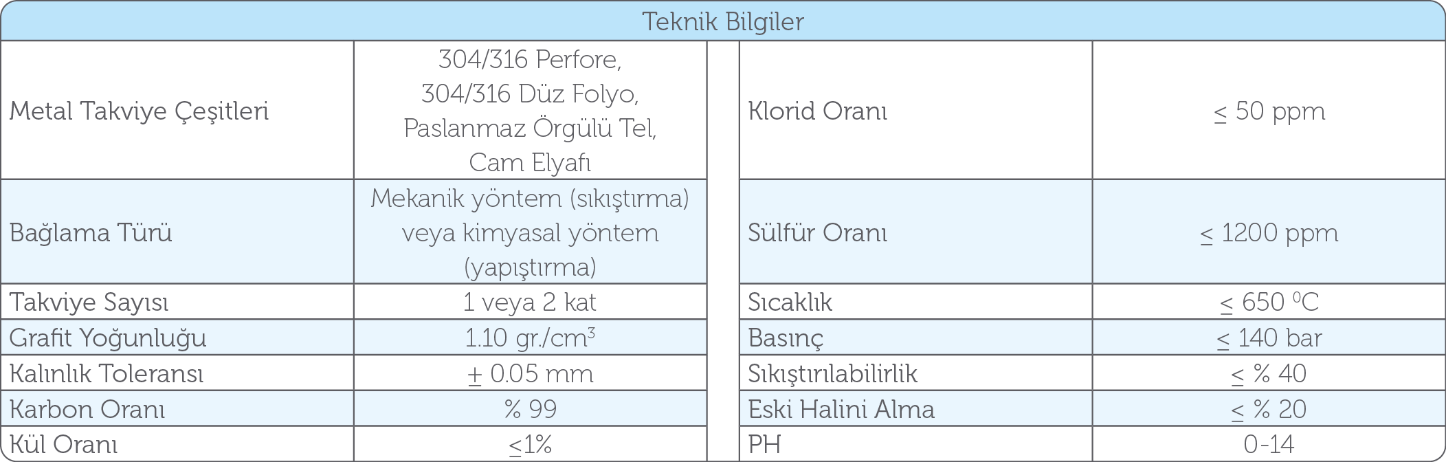 Takviyeli Grafit Levha, içi metalik malzeme ile takviye edilerek saf esnek grafit levhalardan imal edilmiştir. Levhanın arasında takviye malzemesi olarak, bir veya iki kat paslanmaz perfore levha, paslanmaz folyo, paslanmaz örgülü tel, karbonlu çelik perfore levha kullanılır ve levhanın iki tarafı saf grafit levha ile kaplanmıştır. Grafit katmanlar ile takviye malzemeleri mekanik usullerle veya yapıştırıcı ile birbirlerine bağlanır.